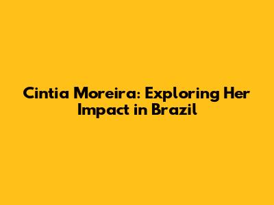 Let's dive into the world of Cintia Moreira, a notable figure in Brazil. Whether you're already familiar with her or just curious, this article aims to provide a comprehensive overview of her contributions and significance. We'll explore various aspects of her life, career, and impact, giving you a well-rounded understanding of why she's a person of interest. So, buckle up and get ready to learn more about Cintia Moreira and her influence in Brazil.