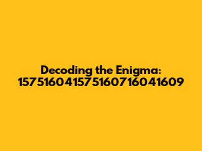 Repetition: Notice any repeating sequences within the string. The repetition of "1575160" and "1604" and "1609" is evident. Such repetition is often a clue that the number isn't completely random. It may suggest that it’s assembled from smaller, meaningful components.