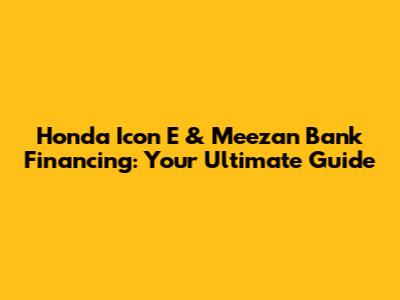 Alright, now that you're excited about the Honda Icon E, let's talk about how to actually get one. This is where Meezan Bank financing comes into play. Meezan Bank is a leading Islamic bank in Pakistan, offering Sharia-compliant financing options. This means their financing products adhere to Islamic principles, avoiding interest-based transactions. If you're looking for a halal way to finance your Honda Icon E, Meezan Bank is a great option. They have established a reputation for providing transparent and ethical financial services. Their financing options are designed to be accessible and cater to a wide range of customers. Meezan Bank's commitment to Islamic banking principles provides customers with a trusted and reliable financial partner. The bank offers a variety of financing products to help you buy your dream Honda Icon E. Now, let's explore how Meezan Bank can help you acquire your own Honda Icon E.