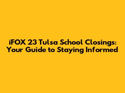 Hey everyone! When it comes to school closings in Tulsa, nobody wants to be left in the dark. Whether it's a surprise snow day, a power outage, or some other unexpected event, knowing what's happening with Tulsa public schools and surrounding districts is super important for parents, students, and staff alike. That's where iFOX 23 Tulsa news comes in! We're here to make sure you get the most accurate and up-to-date information so you can plan your day accordingly. This isn't just about avoiding a wasted trip to school; it's about safety, planning, and peace of mind. We know how hectic mornings can get, and the last thing you need is confusion about whether school is in session. So, let's dive into how iFOX 23 Tulsa keeps you in the loop on all things school closings, making your life just a little bit easier.