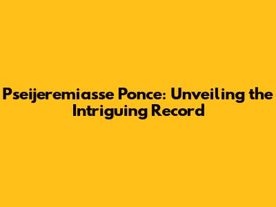 Delving into the pseijeremiasse ponce record, we embark on a journey to uncover the details and significance surrounding this particular entry. Whether it pertains to an individual, an event, or a specific achievement, understanding the context and implications of the "pseijeremiasse ponce record" is crucial. Let’s explore the various facets that contribute to its importance and shed light on its relevance.