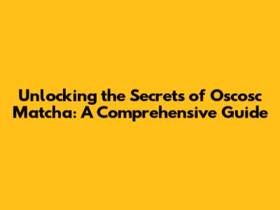- Brand: It's also plausible that "Oscosc" is simply a brand name or a specific product line from a particular tea company. In this case, the unique characteristics of Oscosc Matcha would be determined by the brand's specific production methods, blending techniques, and quality control standards.
