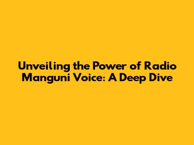 Hey guys! Ever wondered about the impact of Radio Manguni Voice? It's a name that might not be on everyone's radar, but trust me, it packs a punch! We're talking about a significant player in the world of information dissemination, community building, and cultural preservation. In this deep dive, we'll explore what makes Radio Manguni Voice so special, its influence on the community, and why it's a topic worth paying attention to. We'll break down everything from its history to its current impact and future potential. Ready to dive in? Let's get started!