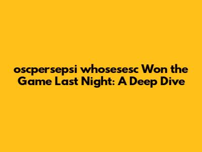 Alright, guys, let's dive straight into the heart of the action! Last night's game between oscpersepsi and whosesesc was an absolute nail-biter, filled with twists, turns, and moments that had fans on the edge of their seats. When we talk about intense matchups, this one definitely sets a new standard. Understanding who won is just the tip of the iceberg; let's break down how they achieved victory and the key moments that defined the game. Getting into the specifics, the showdown showcased not just skill but also strategy, resilience, and a bit of sheer luck. Whether you're a die-hard fan of either team or just a casual observer, there was something in this game for everyone to appreciate. We'll explore the crucial plays, individual performances, and the overall game plan that ultimately led to the final result. Buckle up because we're about to unpack everything that made this game unforgettable. The atmosphere was electric, and the stakes were high, contributing to an already dramatic narrative. We'll examine the impact of crowd support, the pressure on the players, and how these external factors played a role in shaping the game's outcome. So, let’s get started and see what really happened.